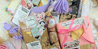 Choose from a variety of “Mystery Date” wrapped books! Each one carefully selected and labeled with fun, intriguing hints about the story inside (think: tropes, vibes, and different genres). Pick your own pens, teas, hot chocolate, stickers, bookmarks, glasses, sheet masks and more to decorate your book! You won’t know the exact title until you unwrap it at home, making it the perfect cozy companion for your new bookmark,